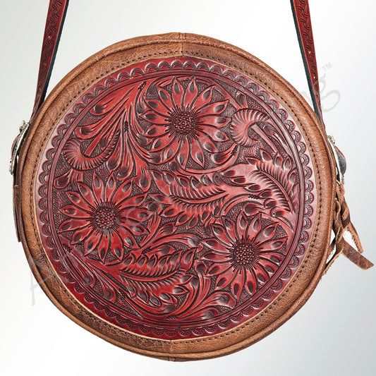 ADBGI220 Round Tooled Leather & Hair-On Crossbody Bag - Floral Flap Western Purse