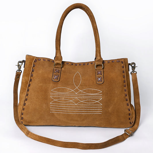 ADBGM127F Genuine suede Western Tote Bag - Light Brown Embroidered Leather Handbag with Whipstitch Detail