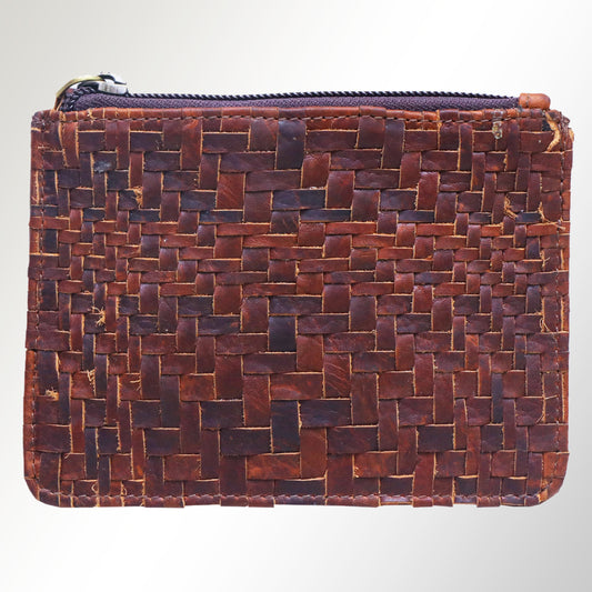 ADBGM121 Handwoven Leather Coin Pouch - Distressed Basketweave Zip Wallet