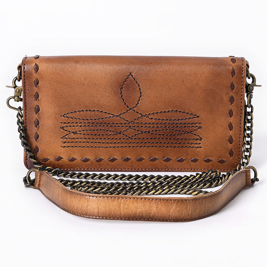 ADBGM169AM Hand-Stitched Tan Leather Crossbody Purse with Chain Strap