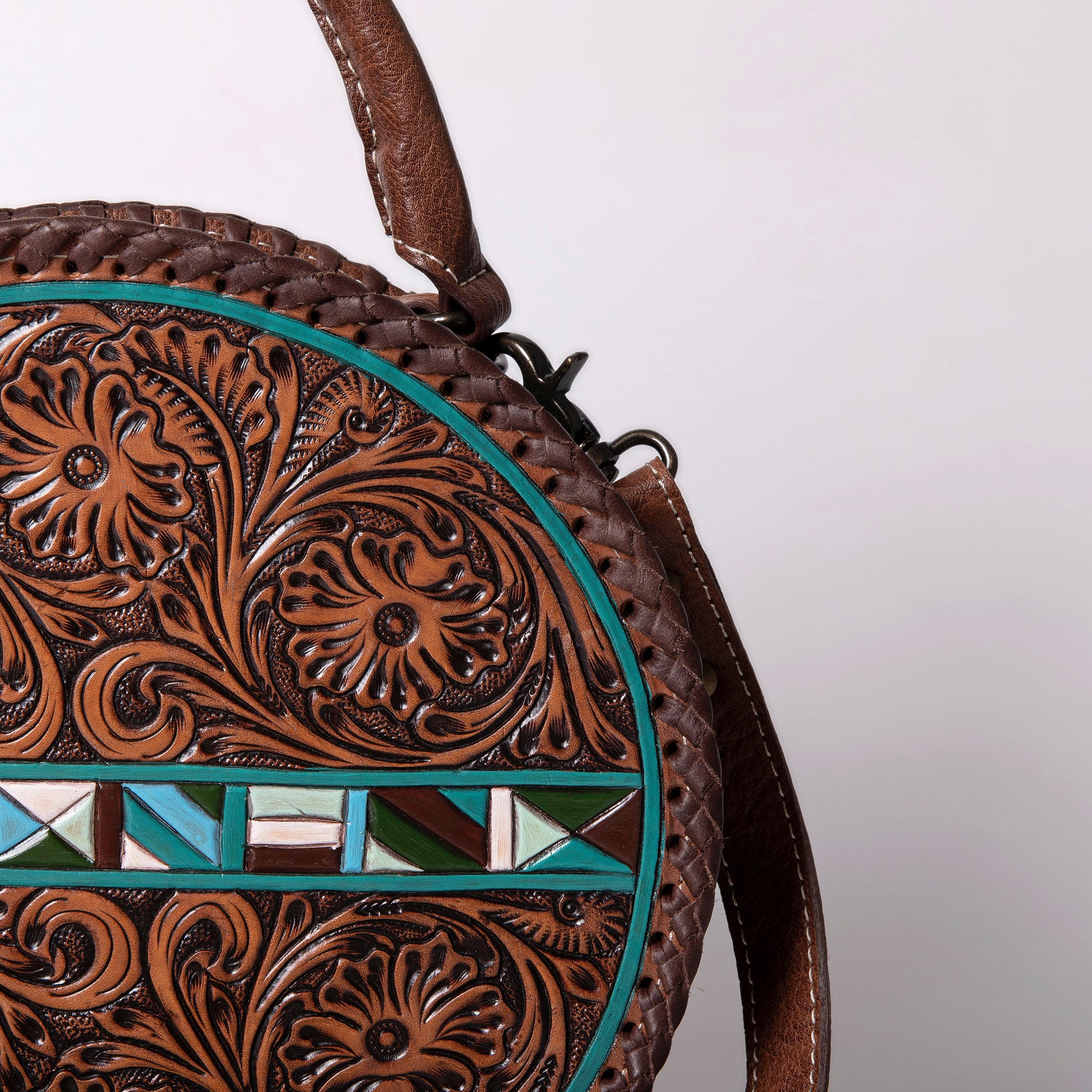 Crafted by American Darling’s master artisans in Texas, this hand-tooled leather canteen bag celebrates the art of Western craftsmanship. Its round shape, add a bold yet refined touch to a timeless floral carving design that echoes heritage equestrian style.