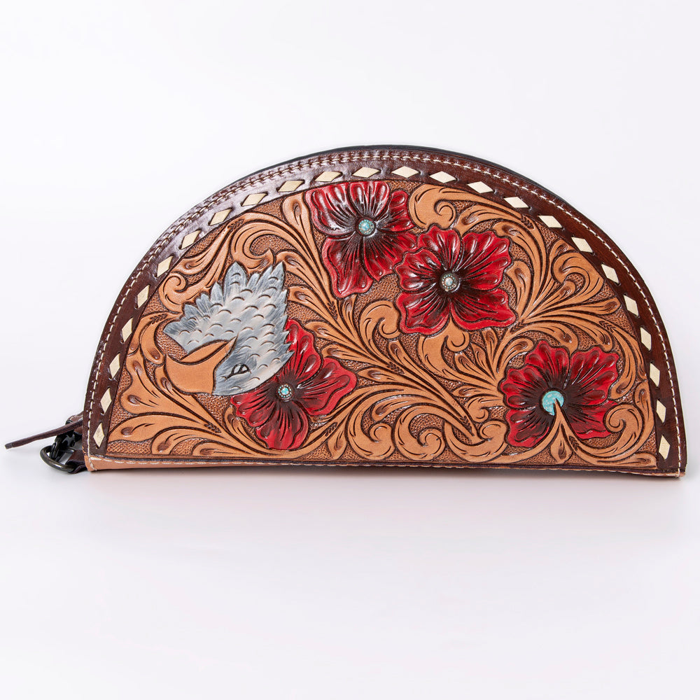ADBG1071 American Darling Hand-Tooled Leather Taco Handbag - Western Floral Carved Genuine Leather Wristlet