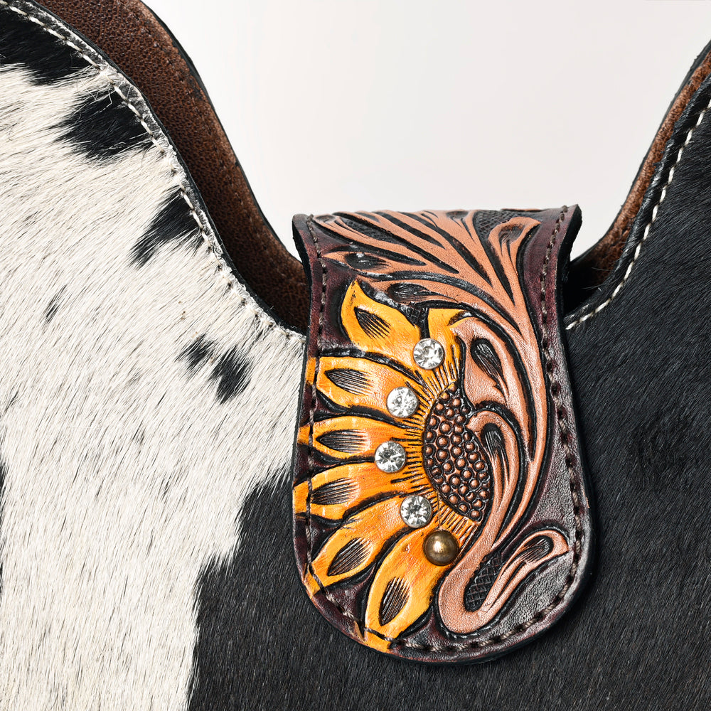 ADBG1076 American Darling Hair-on Cowhide Hobo Bag with Tooled Floral Strap Western Genuine Leather Purse