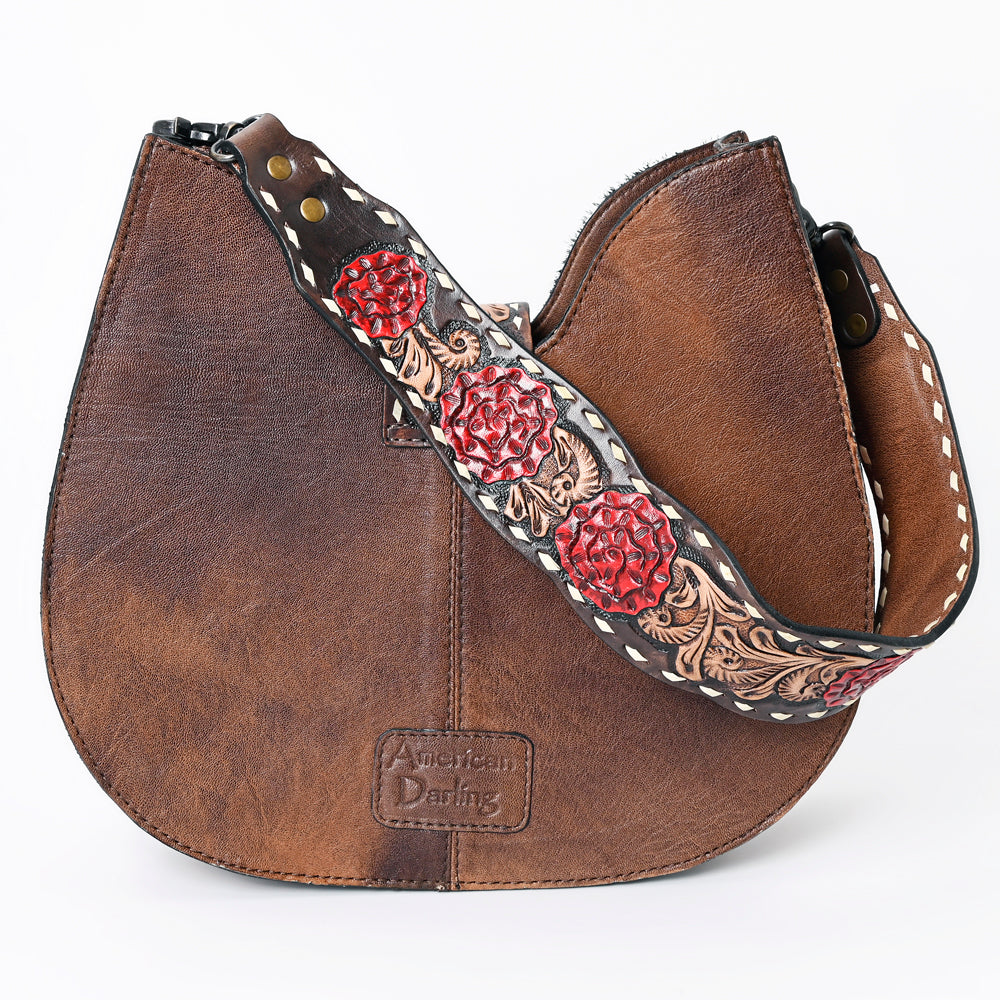 ADBG1077 American Darling Hair-on Cowhide Hobo Bag with Hand Tooled Floral Strap Western Leather Purse