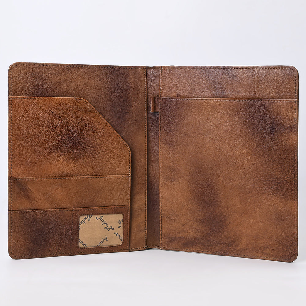 Material & Craftsmanship: This premium Western portfolio from American Darling is meticulously crafted from full-grain genuine leather with a crocodile-embossed center panel framed by intricate hand-tooled floral carvings. Every detail reflects the precision of master artisans in Texas, using traditional vegetable-tanning techniques that preserve natural texture and durability. The contrast of smooth leather with embossed and tooled accents delivers a timeless Western statement of strength and sophistication.