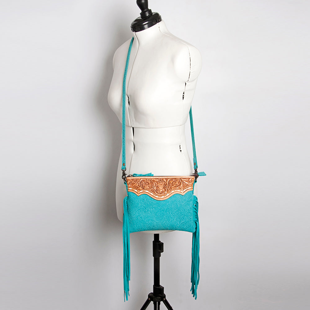 ADBG109 American Darling Hand-Tooled and Floral Embossed Leather Western Crossbody Bag