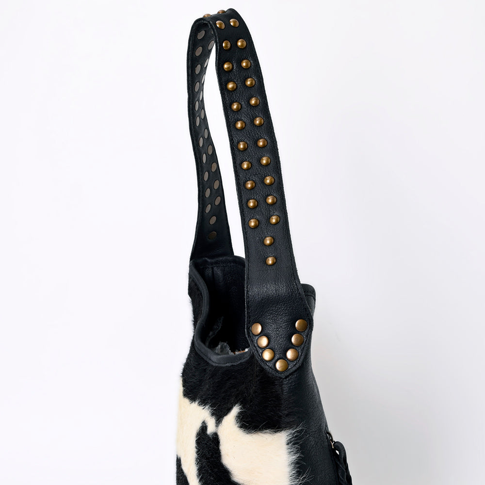 - Handcrafted with premium full-grain leather and genuine hair-on cowhide.