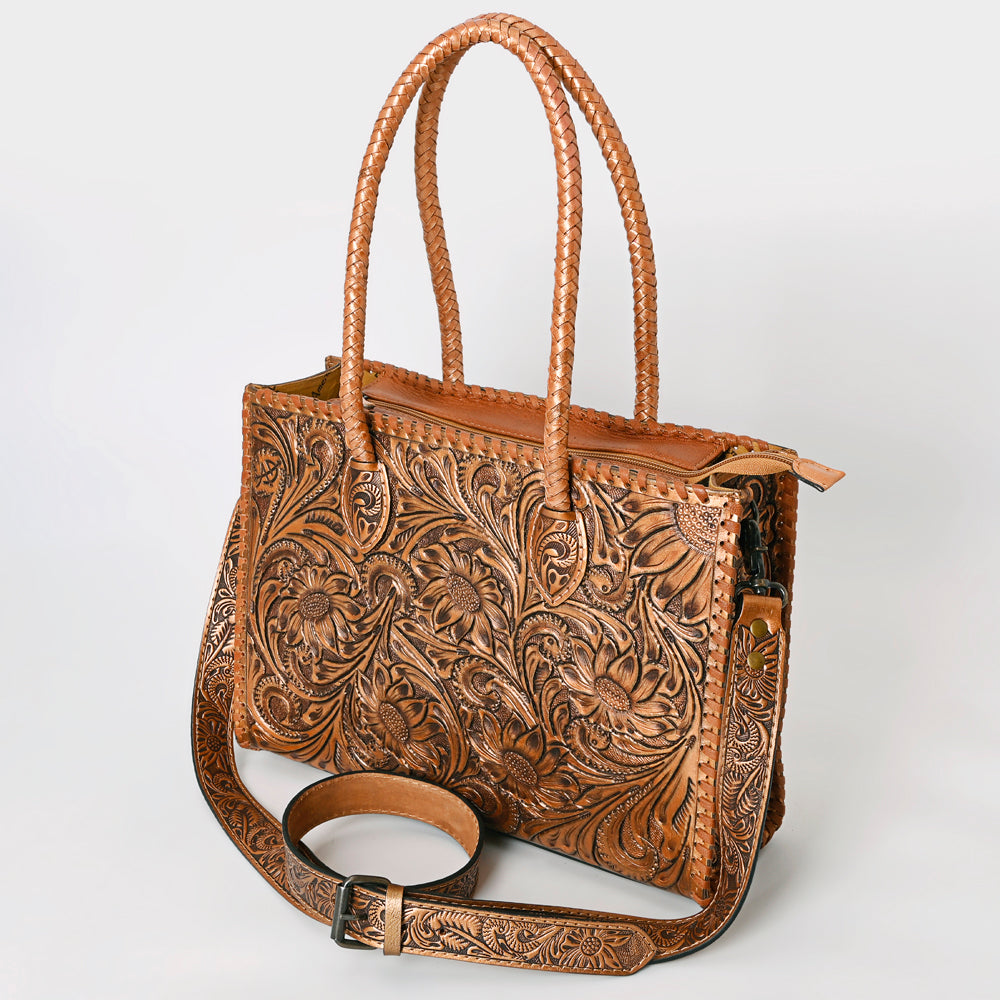 ADBG1131 American Darling Hand Tooled Leather Tote Bag | Western Floral Carved Purse
