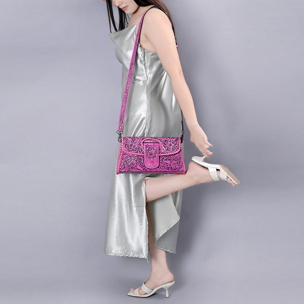 ADBG1134 American Darling Pink Hand Tooled Floral Leather Clutch & Crossbody Bag