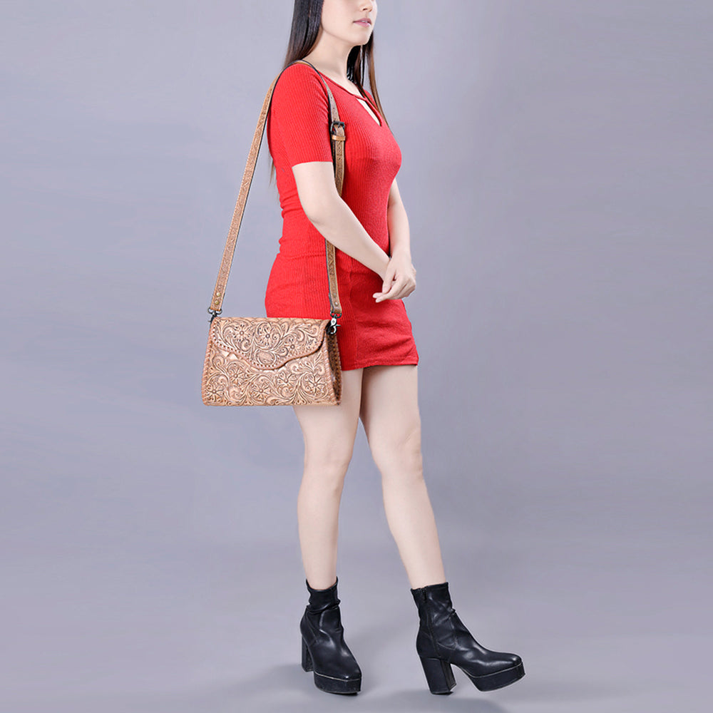 ADBG1137 American Darling Hand Tooled Floral Leather Clutch & Crossbody Purse