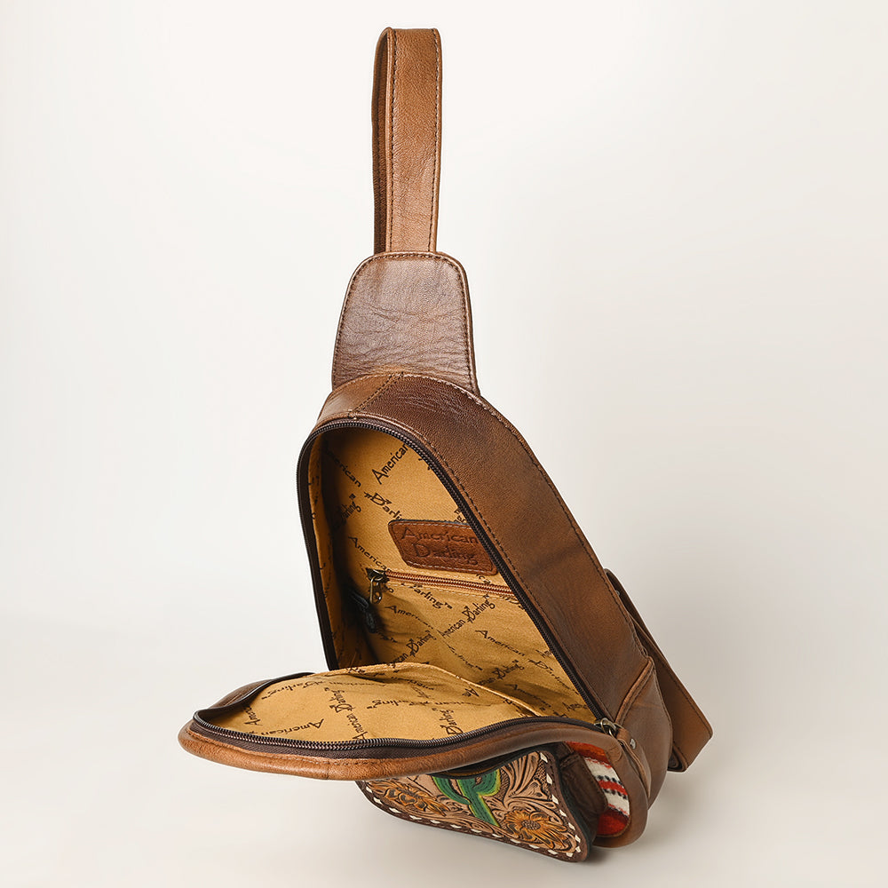 ADBG1146 American Darling Saddle Blanket Sling Bag | Floral Tooled Leather Backpack