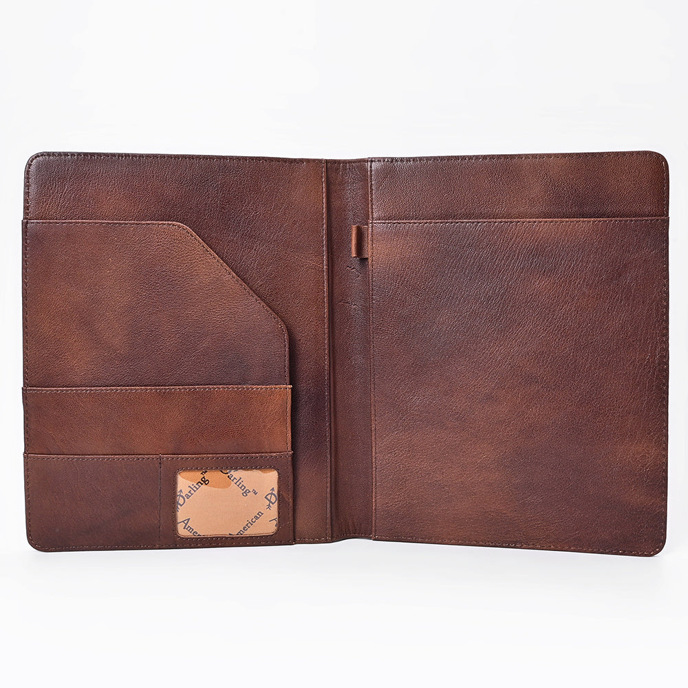 ADBG1232 American Darling Western Hand-Tooled Leather Portfolio Bag - Floral Carved Genuine Leather Case