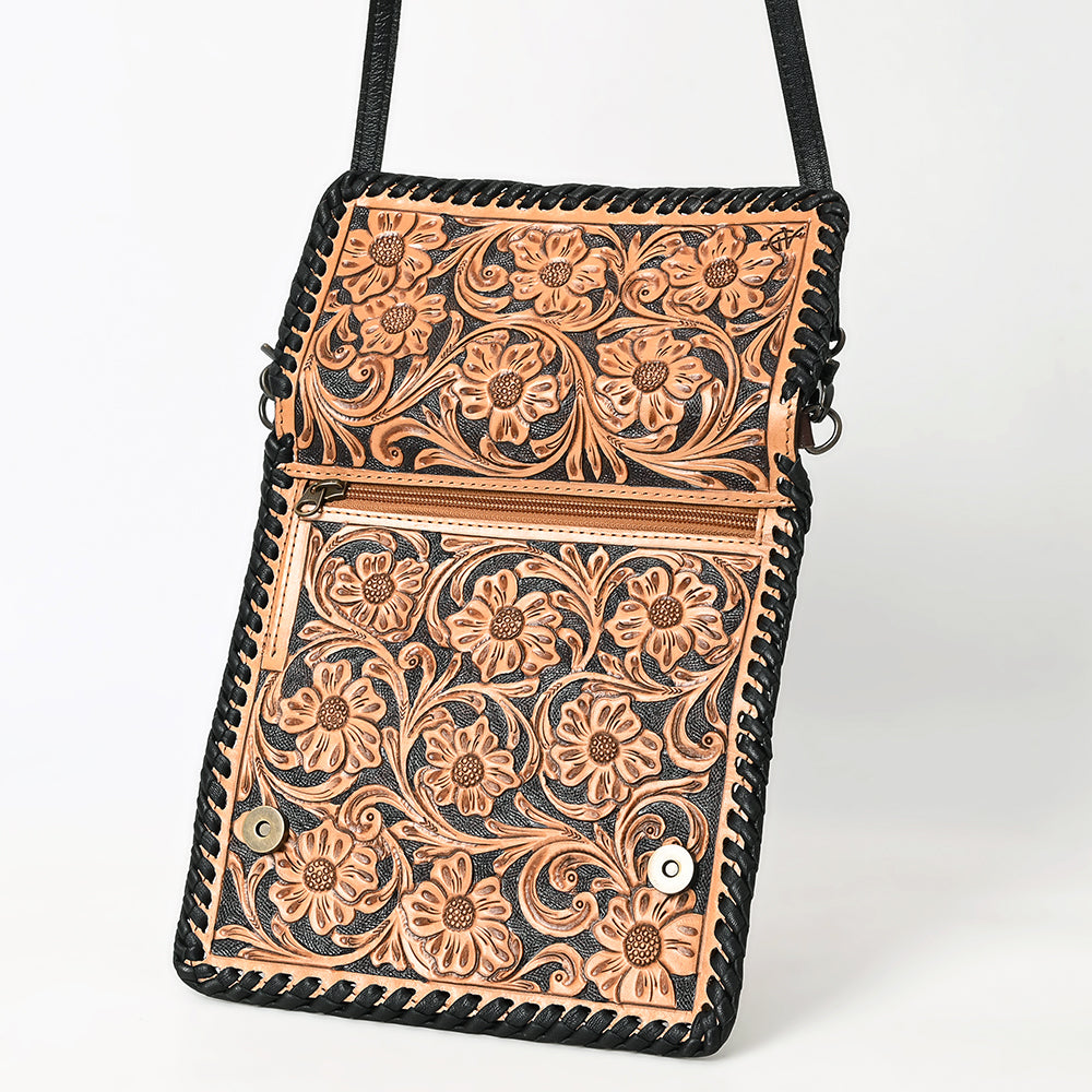 ADBG1281 American Darling Hand Tooled Leather Crossbody Wallet | Floral Braided Purse