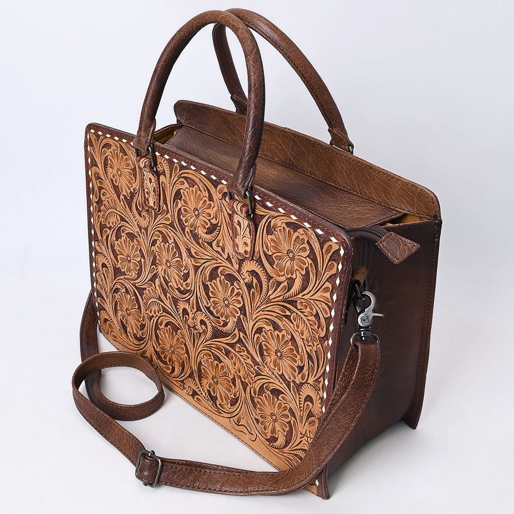 ADBG1429 American Darling Hand-Tooled Genuine Leather Western Tote Bag - Floral Carved Artisan Design