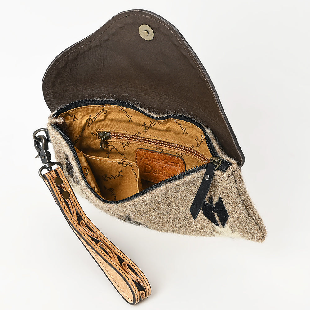ADBG1477 American Darling Hand Tooled Leather Western Wristlet Bag with Saddle Blanket & Floral Carved Flap