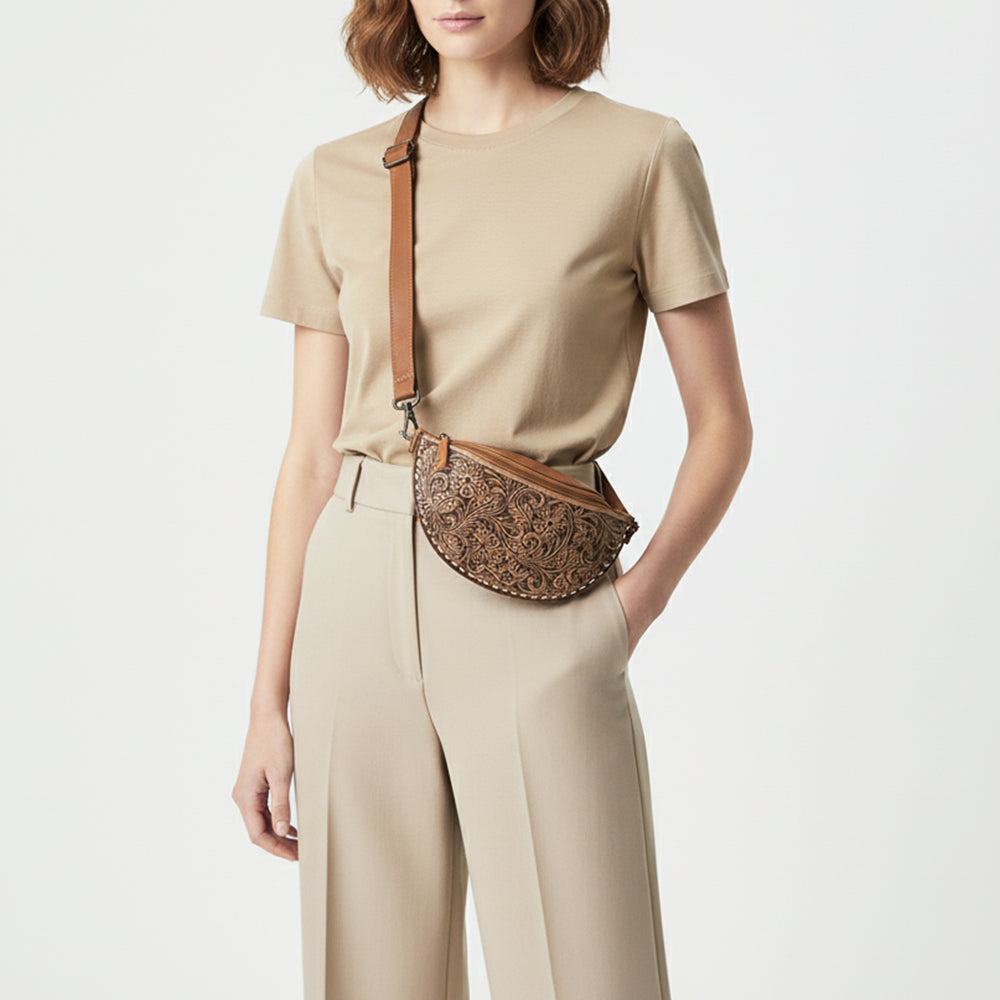 Crafted with artistry and precision, this American Darling Fanny Pack is made from Hand Tooled, Floral Carved Genuine Leather combined with High-Quality Soft And Supple Eco-Friendly Vegetable Tanned Full Grain Leather. Expert craftsmanship ensures a durable yet comfortable carry, making it ideal for hands-free convenience throughout daily activities or travel.