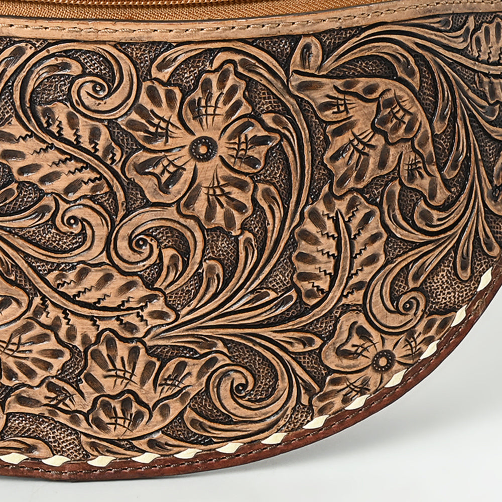 ADBG1531 American Darling Western Leather Fanny Pack with Hand-Tooled Floral Design - Genuine Full-Grain Leather