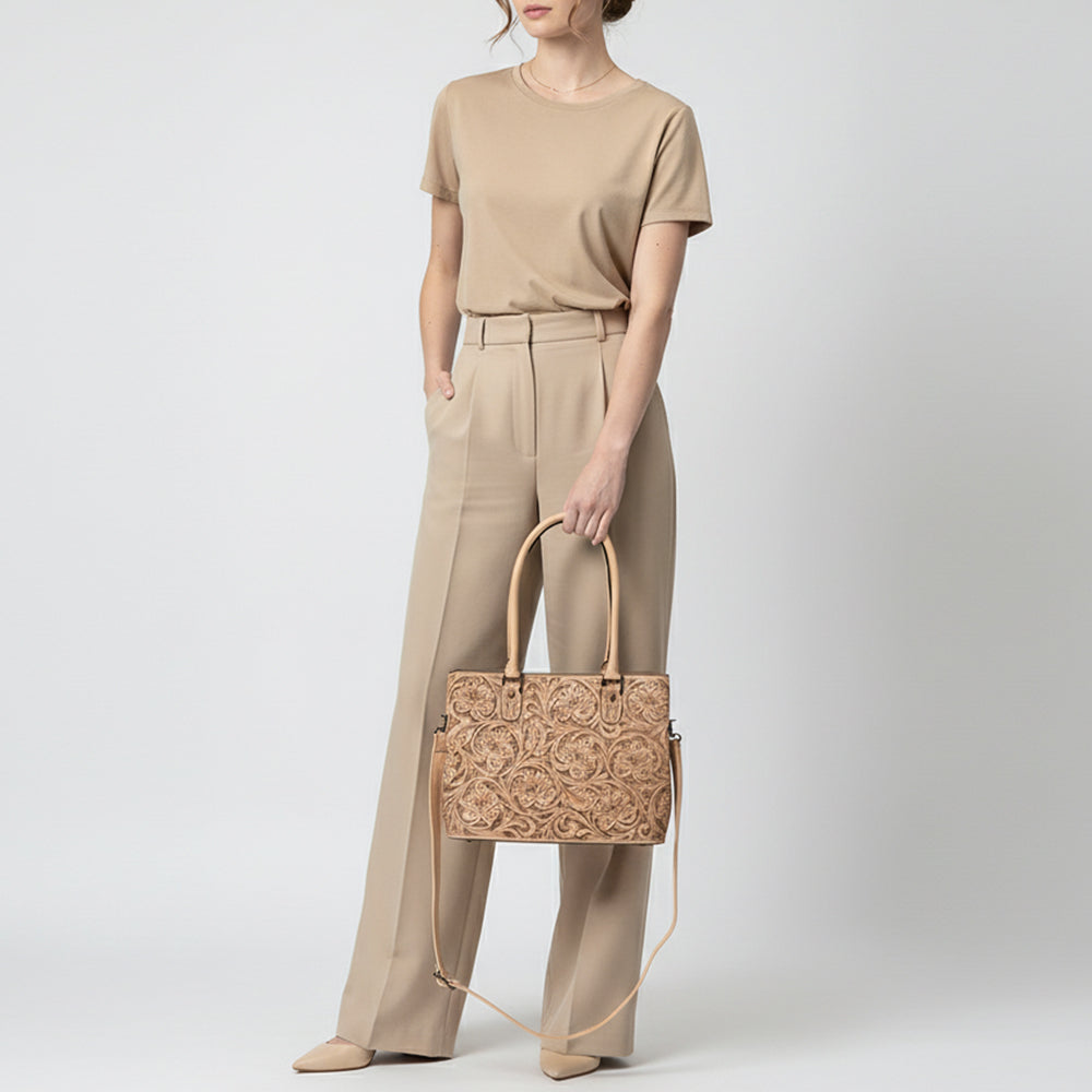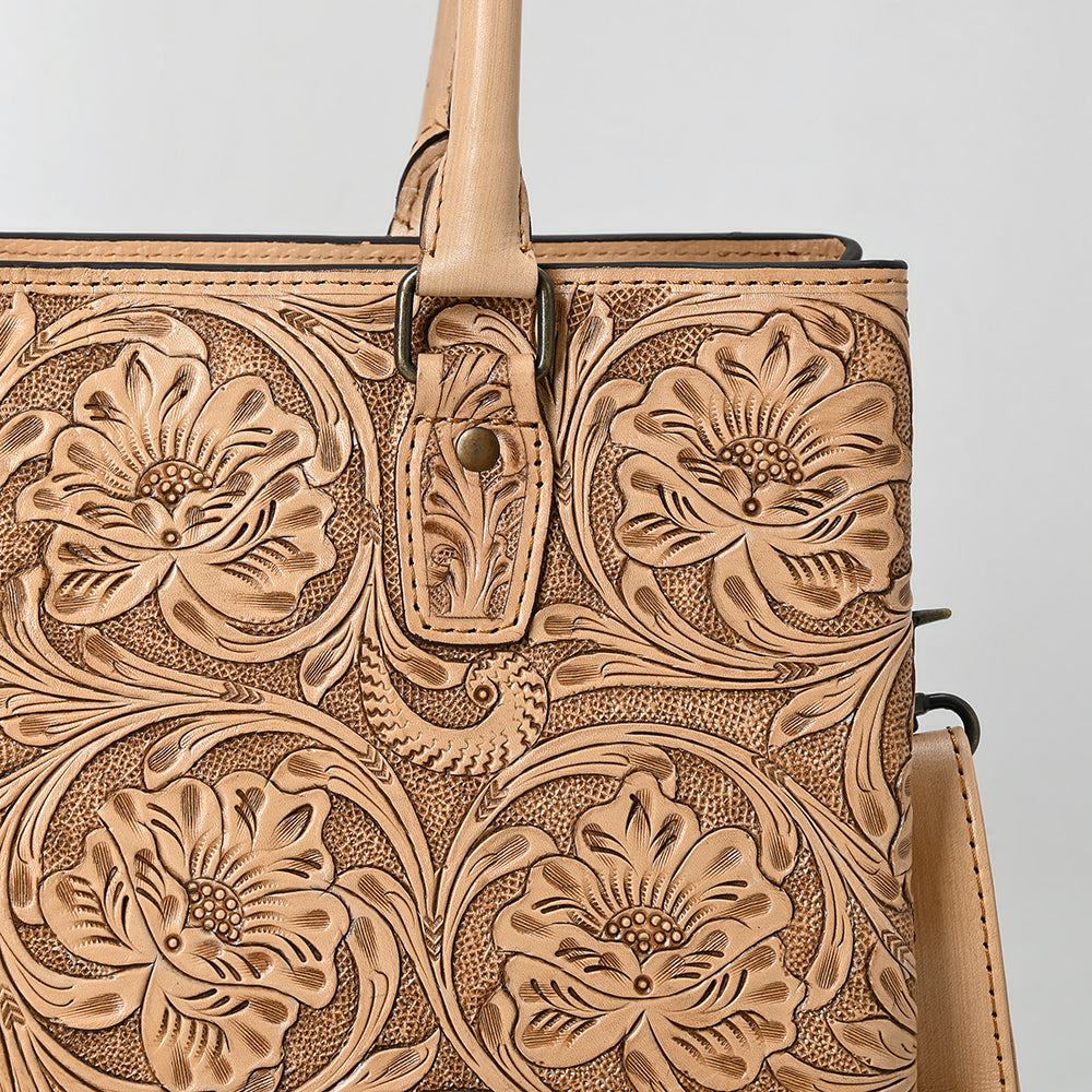 ADBG1539 American Darling Western Leather Tote Bag with Hand-Tooled Floral Design - Genuine Full-Grain Leather