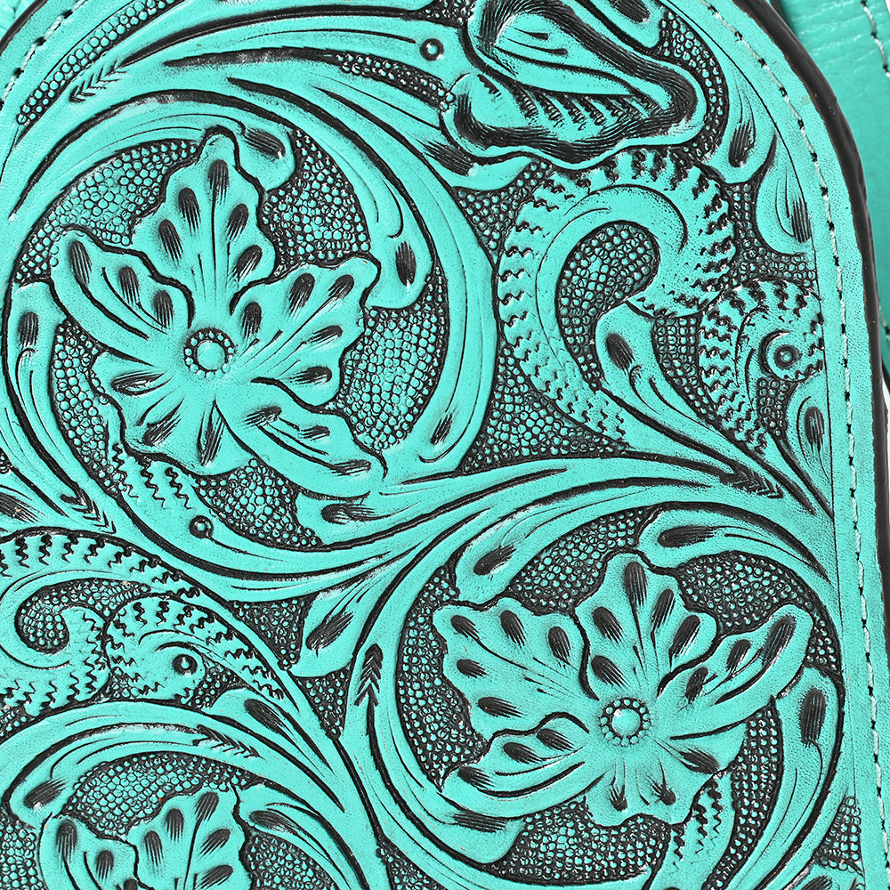 - Hand Tooled and Floral Carved Genuine Leather with artisan craftsmanship