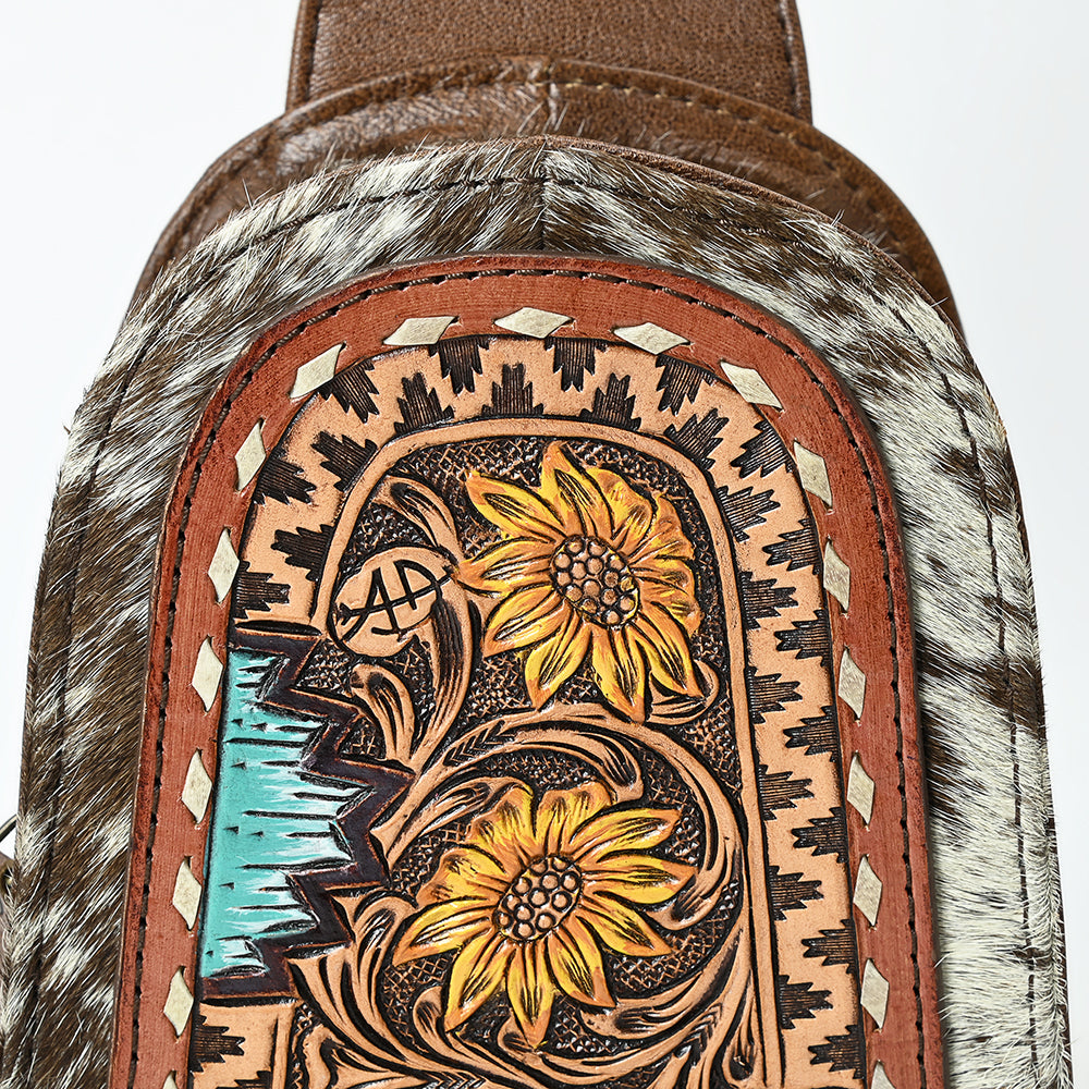 ADBG1543 American Darling Handcrafted Western Leather Sling Bag with Hair-On Cowhide & Hand-Tooled Details