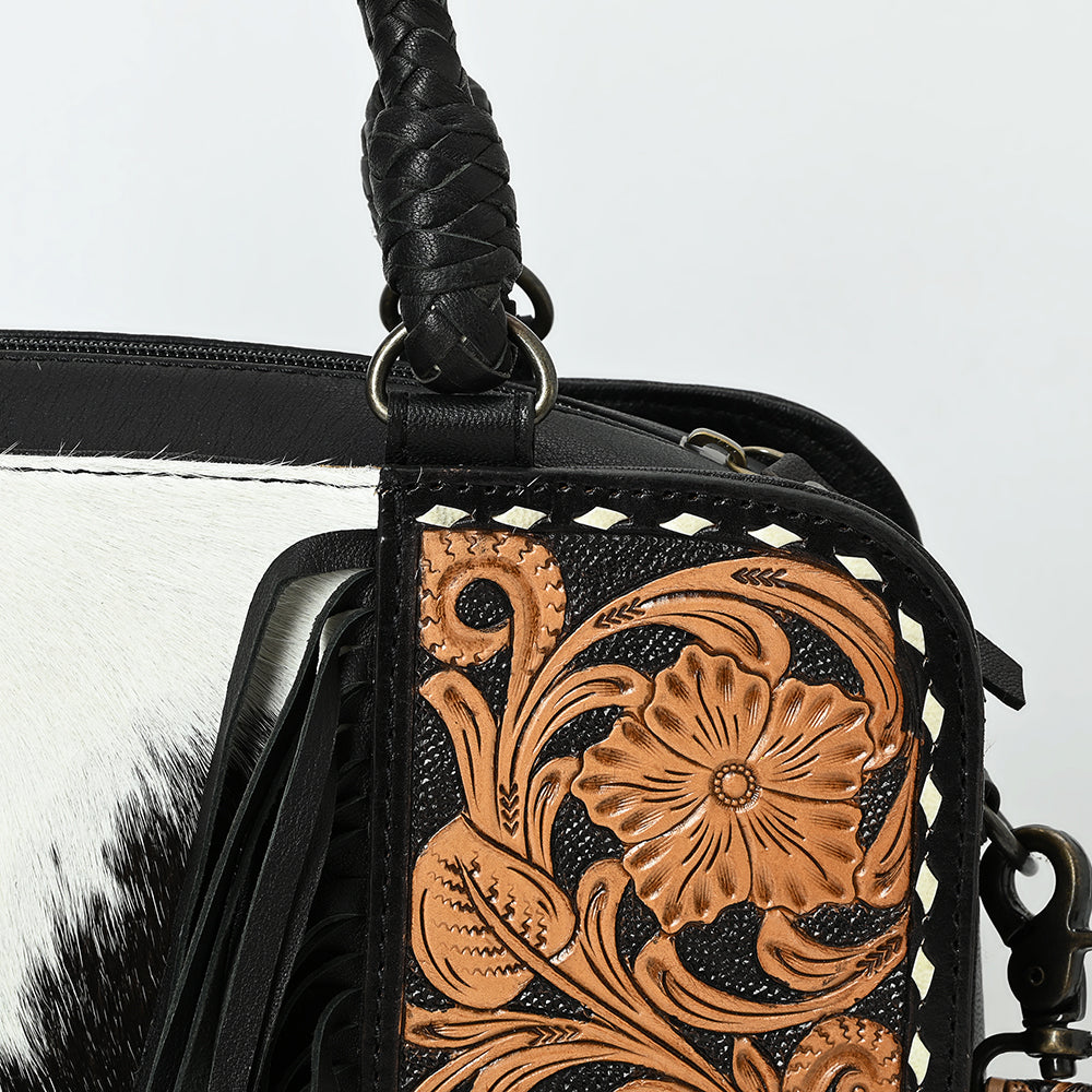 ADBG1551 American Darling Western Leather Tote Bag with Hair-On Cowhide & Hand-Tooled Floral Panels