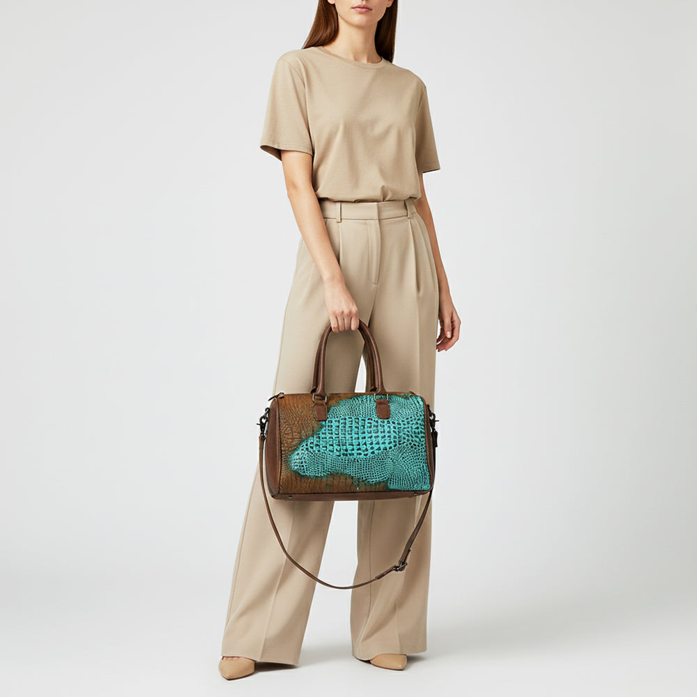 Crafted from premium Crocodile Embossed genuine leather and eco-friendly vegetable-tanned full-grain leather, this Speedy Bag by American Darling offers rugged durability with elevated Western elegance. The soft yet structured construction ensures comfort in everyday handling, while the well-organized interior supports effortless use for travel, daily routines, and work essentials.