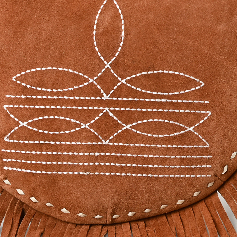 ADBG1625 Genuine suede Fringe Crossbody Bag - Western Embroidered Leather Shoulder Purse