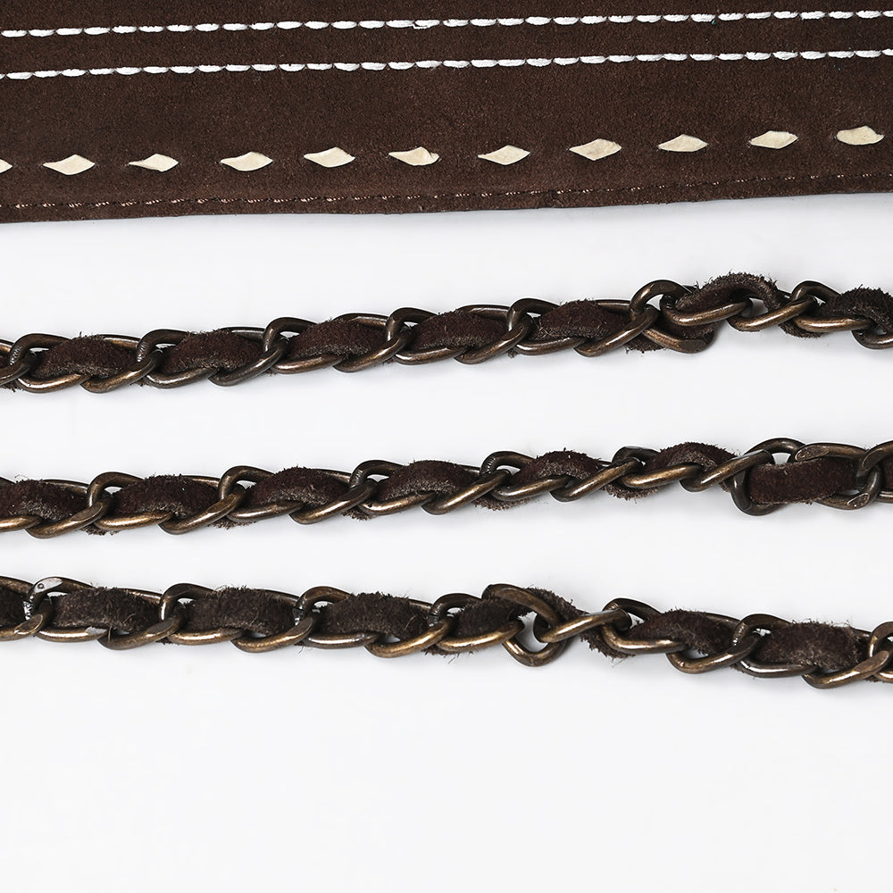 Make a subtle yet striking Western statement with this suede crossbody bag, featuring a refined white embroidered design and antique-style chain strap. The blend of rugged suede and elegant chain gives this bag a versatile edge, perfect for day-to-night styling.