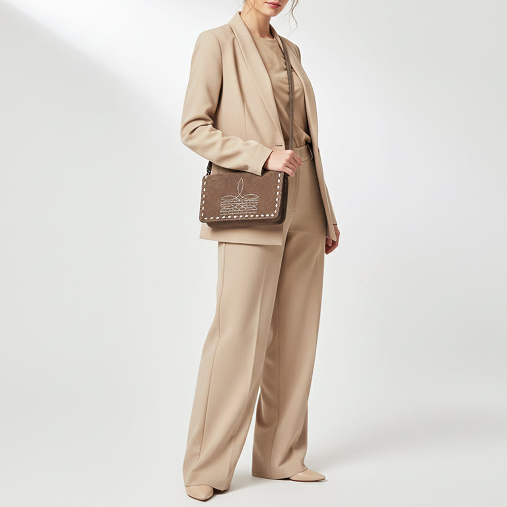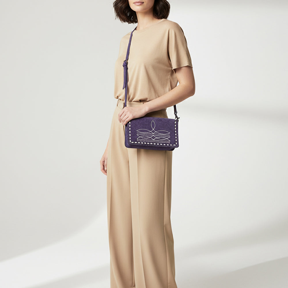 Add a vibrant Western flair to your outfit with this suede leather Wallet bag. Designed with precision and style, this bag features detailed white Western-style stitch embroidery on the flap and borders, capturing the essence of heritage and modernity. The structured silhouette is lightweight and compact, perfect for daily essentials. An adjustable leather strap offers comfortable, hands-free carrying for everyday use, festivals, or rodeo weekends.