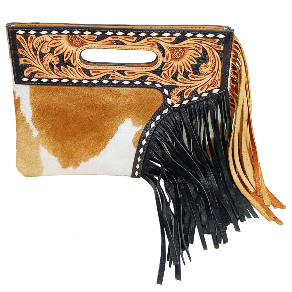 ADBG1893 Clutch Hand Tooled Hair on Genuine Leather Women Bag