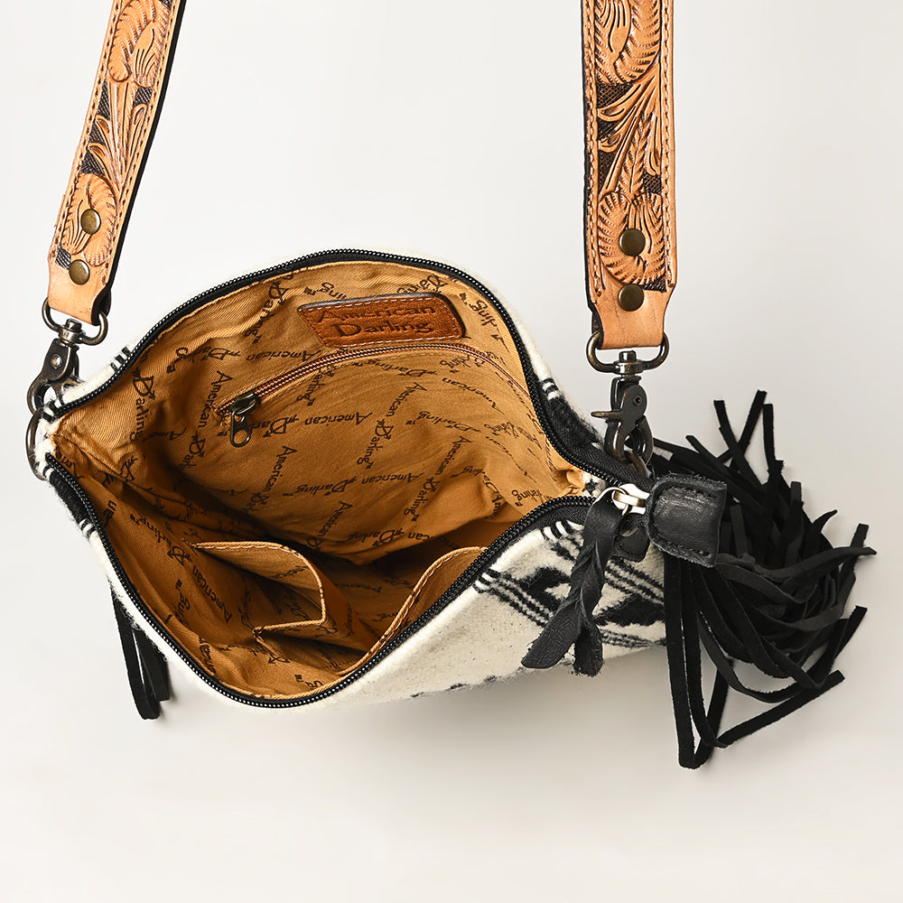 ADBG298 Shelby Western Crossbody Bag Handwoven Saddle Blanket & Genuine Leather Fringe