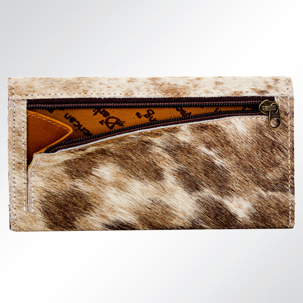 ADBG549TAW Hair-On-Hide Leather Wallet with Tooled Floral Flap Western Trifold Clutch