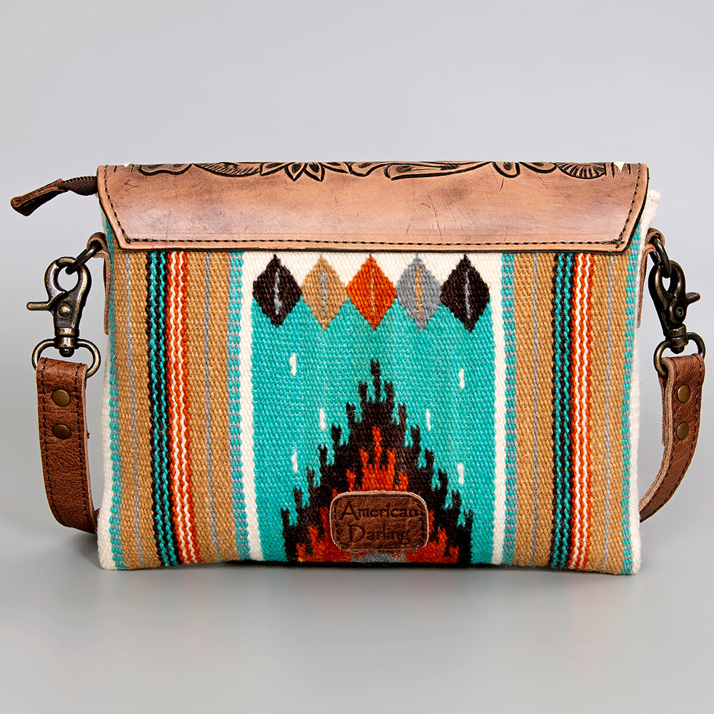 ADBG586 Tooled Leather & Saddle Blanket Crossbody Bag Western Fringe Purse by American Darling