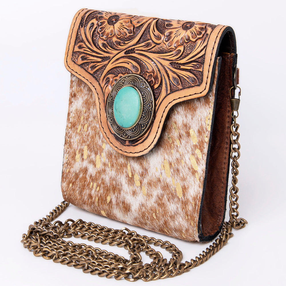 ADBG825 Mini Western Hair-On Leather Crossbody Bag with Turquoise Concho American Darling