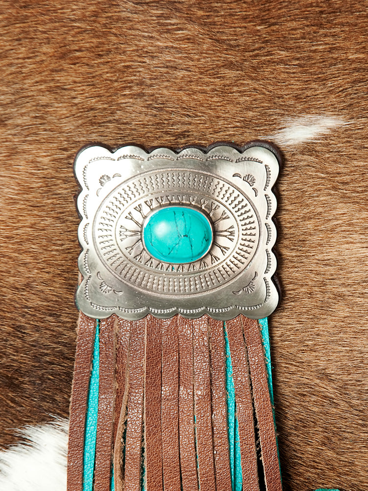 ADBG830 Turquoise Fringe Hair-On Messenger Bag Genuine Tooled Leather Western Messenger