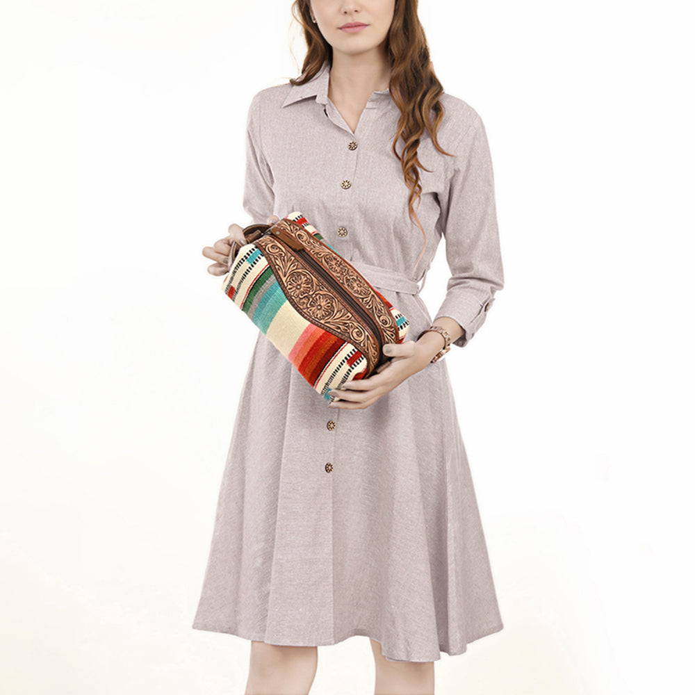 ADBG995 Western Saddle Blanket Toiletry Bag with Tooled Leather Trim American Darling Travel Case