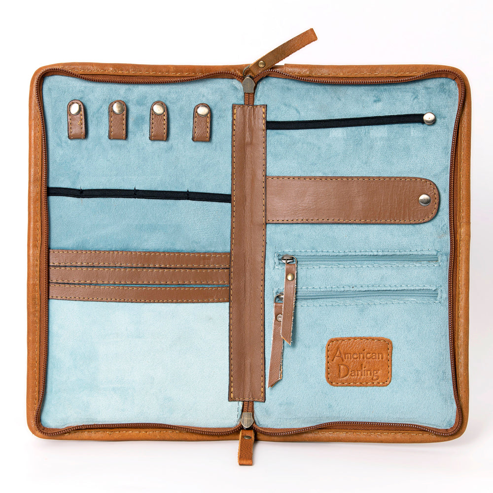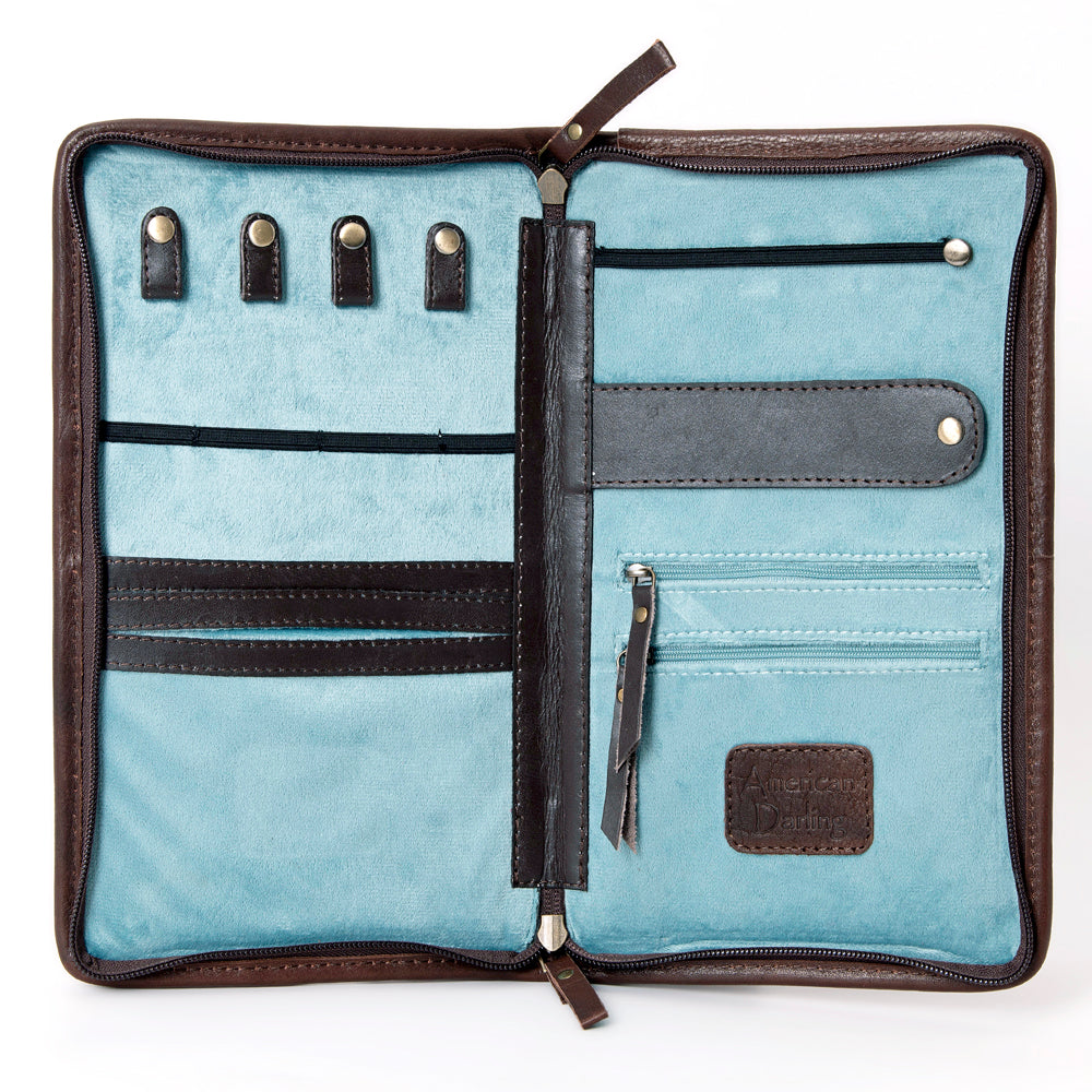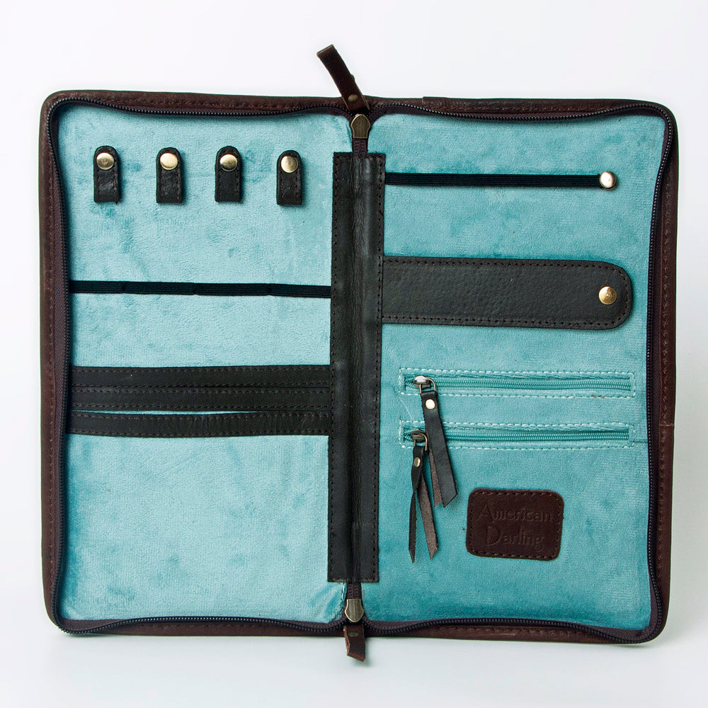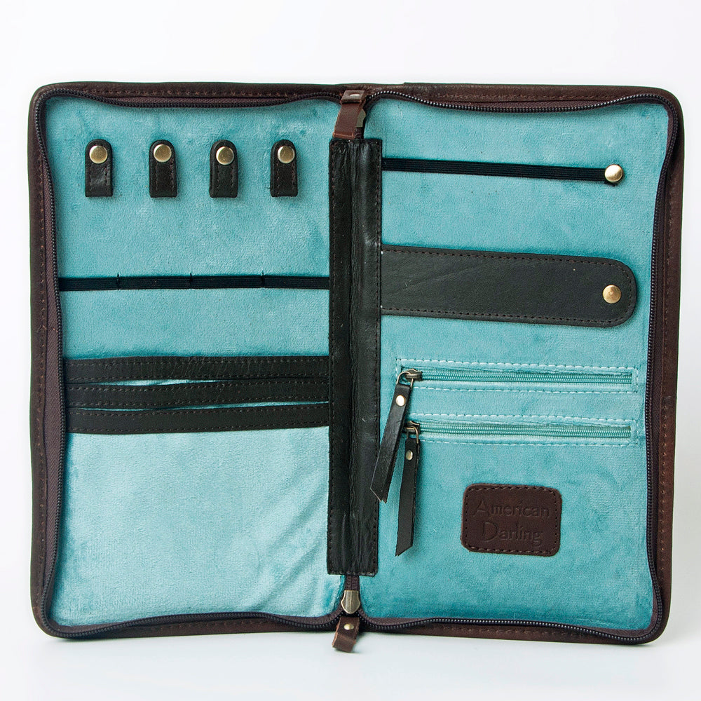 ADBGA323 Hair-On Cowhide & Tooled Leather Western Zip Jewelry Case Floral Edge Design