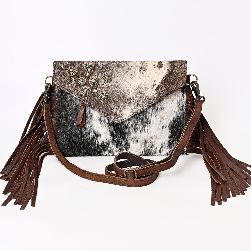 The handpicked cowhide hair-on genuine leather not only adds a soft and tactile element but also serves as an embellishment, enhancing its overall western appearance.