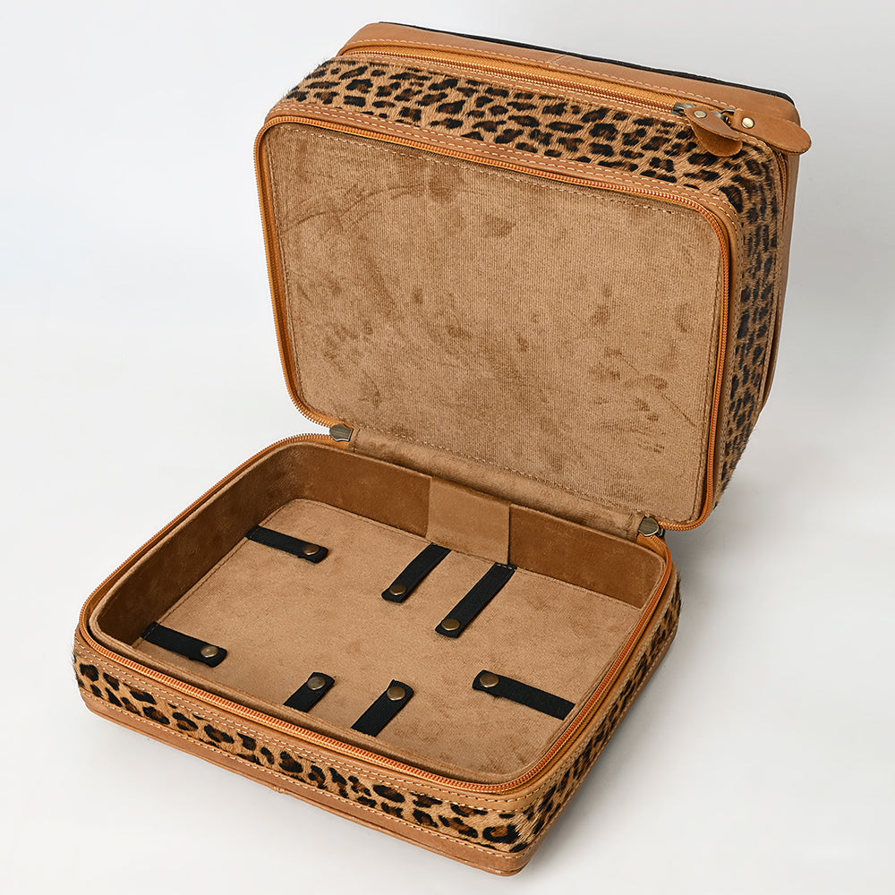 ADBGA454 American Darling Double-Layer Tooled Leather Cowhide Jewelry Case Western Vanity Organizer