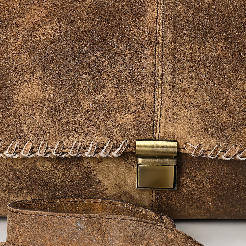 Bring rugged elegance to your professional routine with this handcrafted leather briefcase from American Darling. Made with full-grain genuine leather and accented by whipstitch edges and antique brass hardware, this versatile bag blends rustic charm with durable functionality.