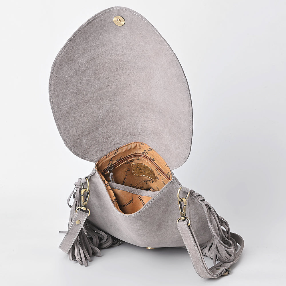 ADBGA713 Genuine suede Western Fringe Messenger Bag - White Stitch Design with Flap Closure