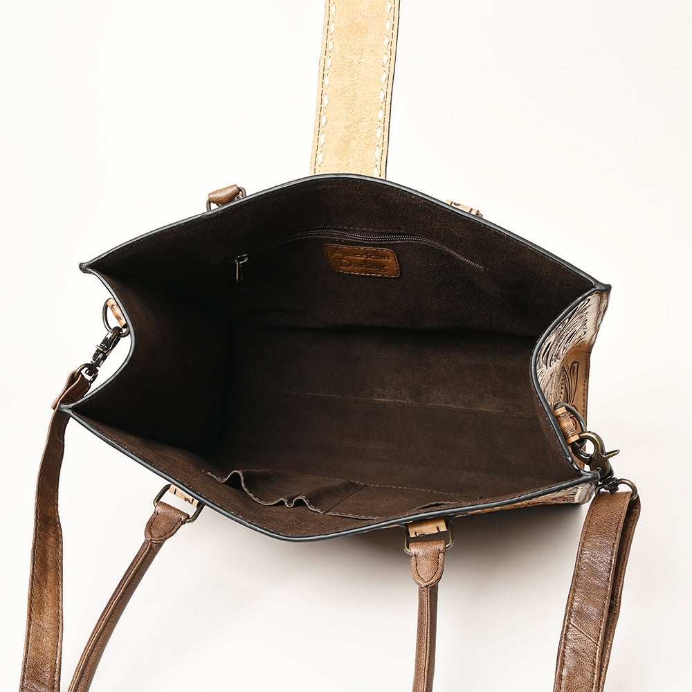 ADBGH104 Tooled Leather Western Tote Bag - Sunflower Floral Handbag with Shoulder Strap