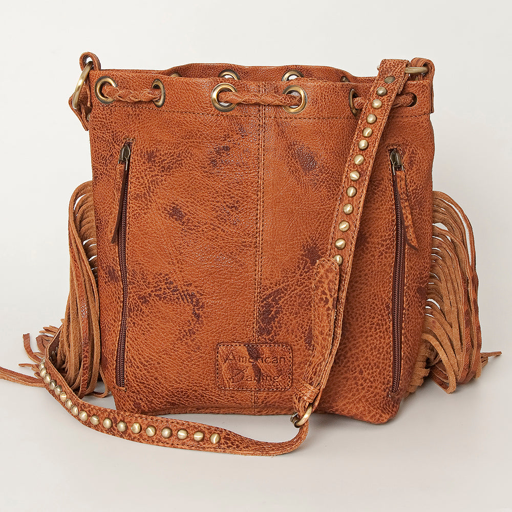 ADBGI102 Studded Leather Fringe Crossbody Bucket Bag - Western Cowhide Style