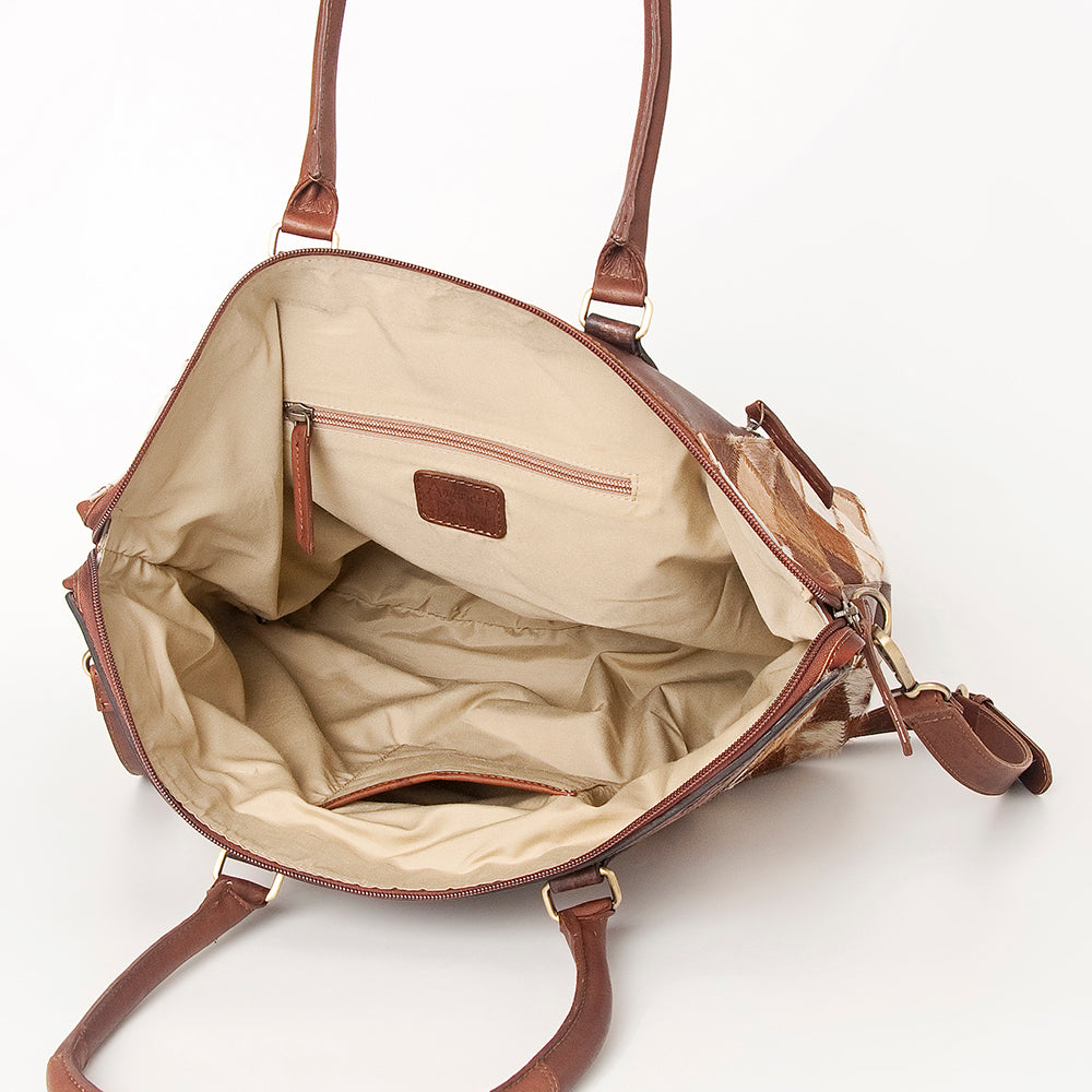 ADBGI105 Western Tote Bag - Genuine Leather & Hair-On Hide with Tooled Detailing