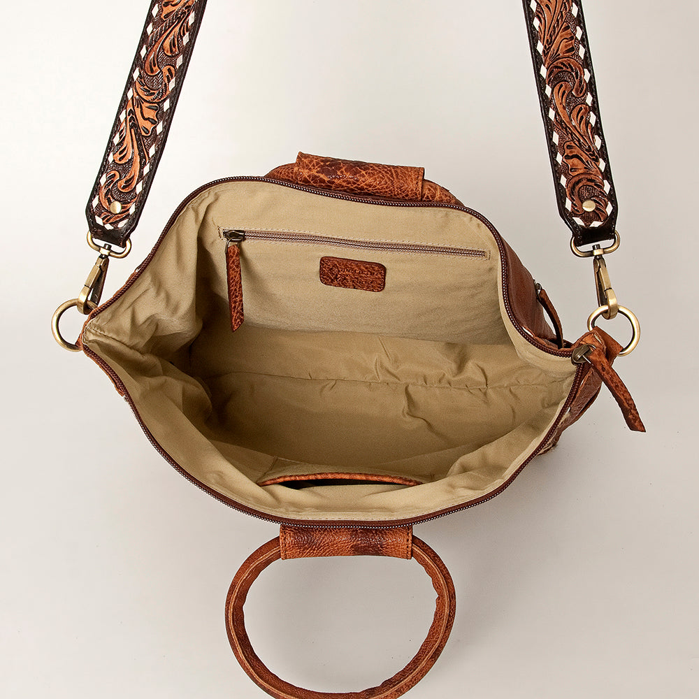 ADBGI143 Hair-On Hide Square Tote with Tooled Leather Patch - Western Cowgirl Bag