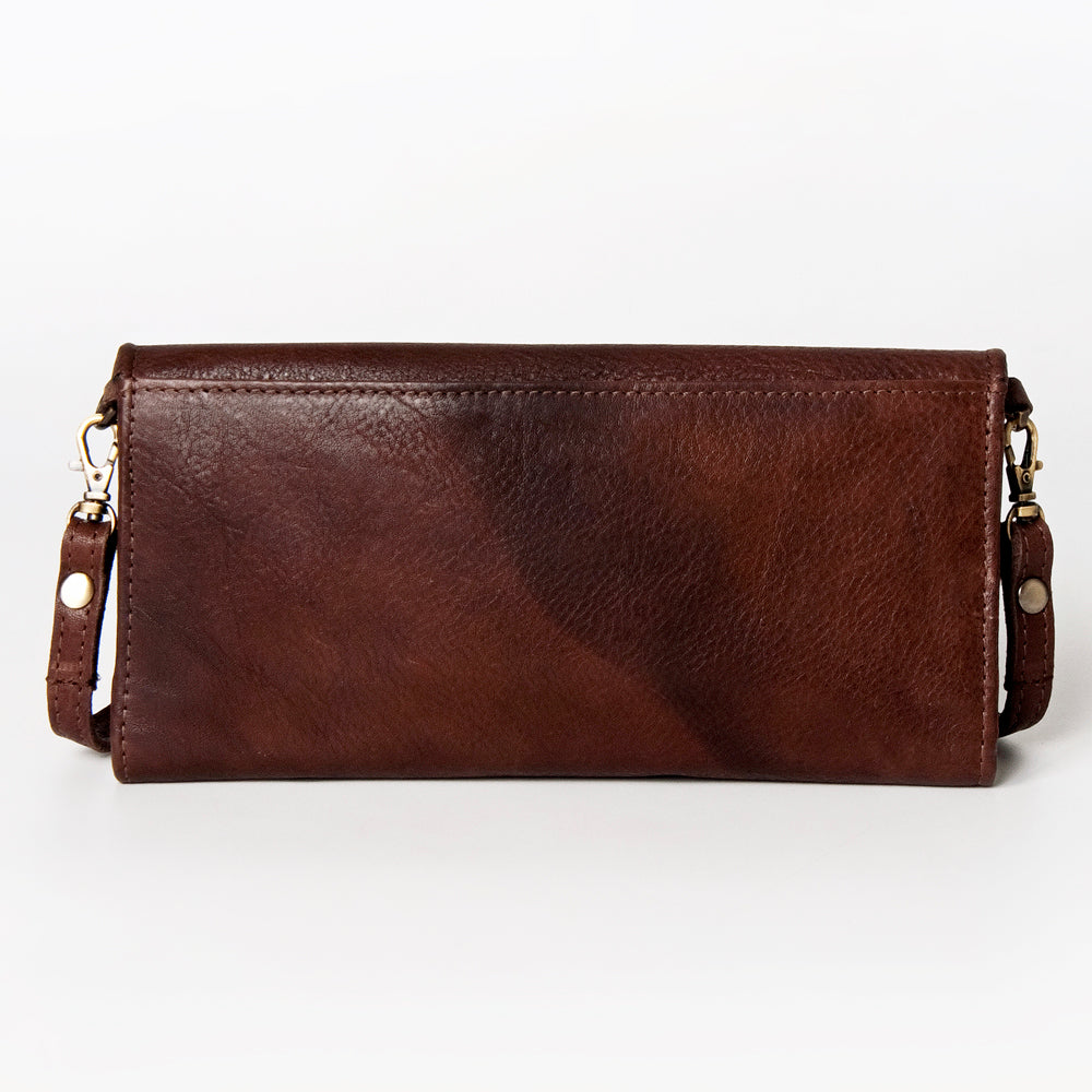 Make a bold statement with this vibrant tooled leather wallet, blending traditional Western charm with modern boho flair. Handcrafted from premium full-grain leather, the flap features intricate floral tooling with inlay, Southwestern geometric accents, and floral motifs.