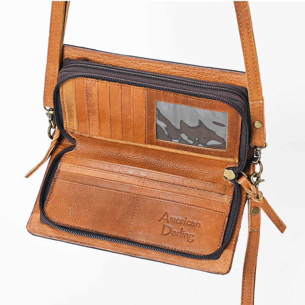 ADBGM169 Hand-Tooled Western Leather Crossbody Purse with Floral Design