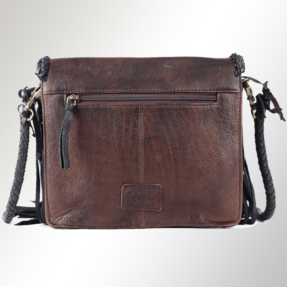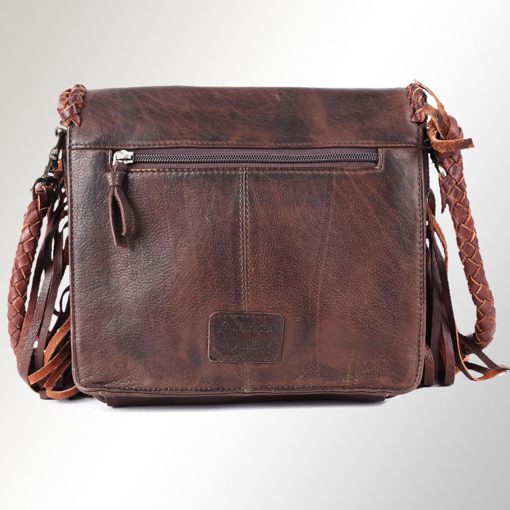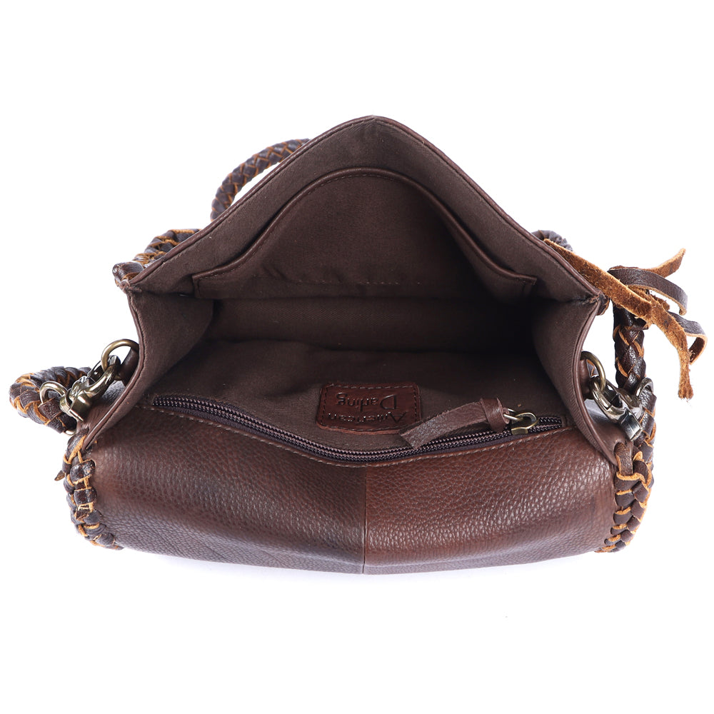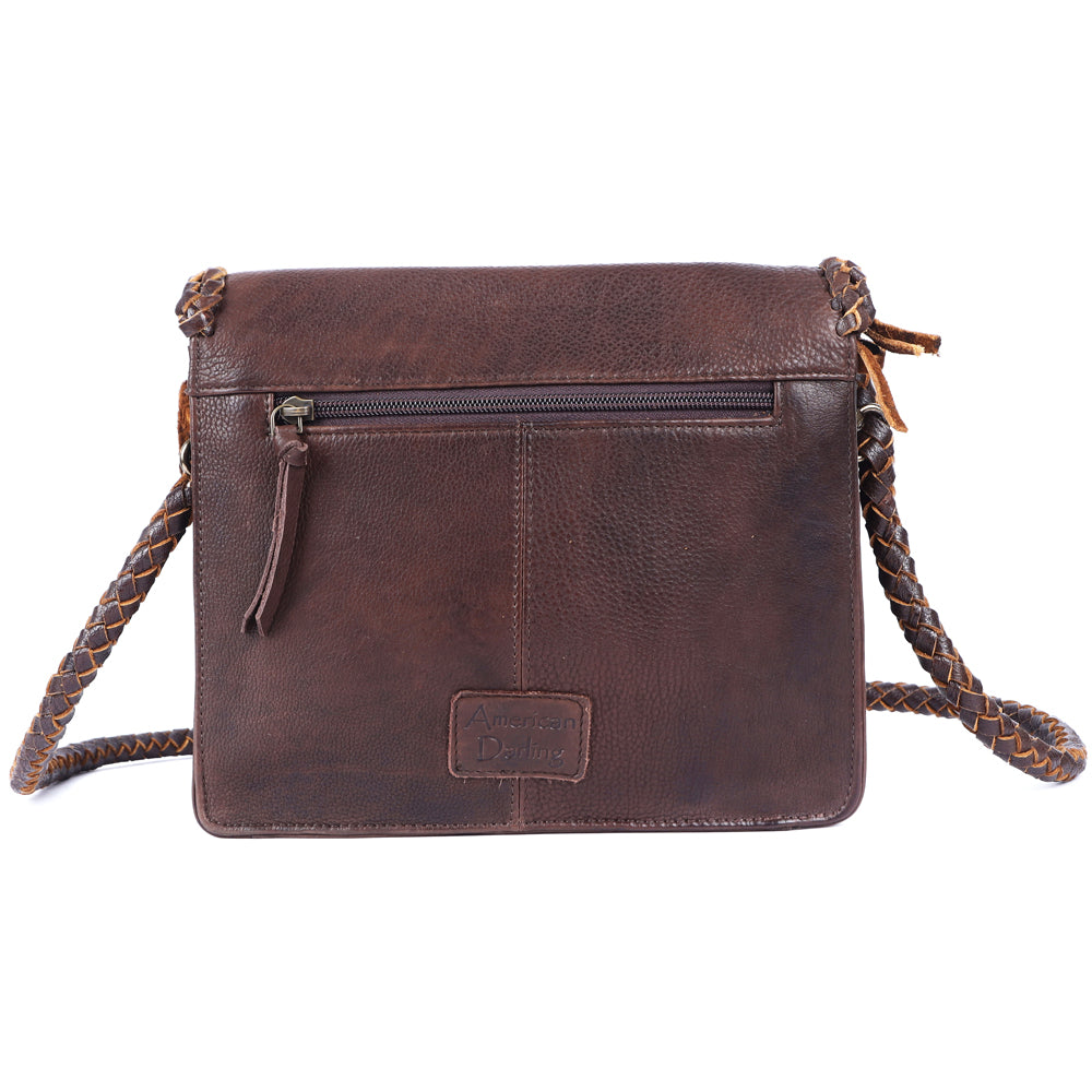 ADBGM261 Handcrafted Leather Crossbody Bag with Turquoise Concho & Braided Trim - Western Shoulder Purse
