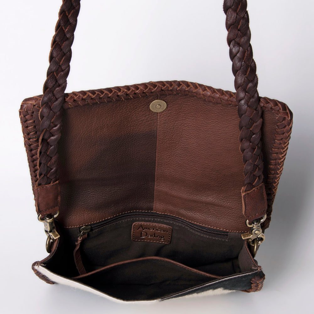Make a bold Western statement with this handcrafted cowhide leather Wallet bag. Featuring genuine hair-on-hide in a classic pattern, this showstopper is trimmed in rich chocolate leather and finished with braided accents and swaying fringe.