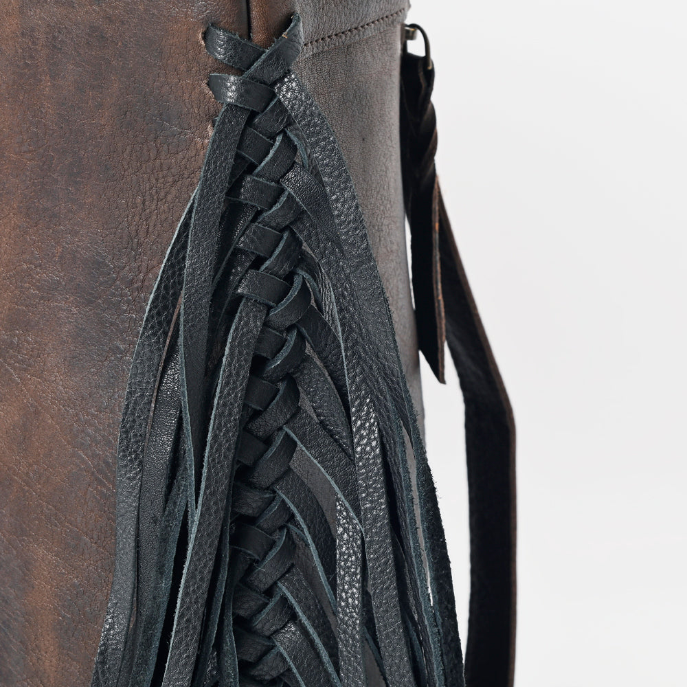 ADBGM275 Western Leather Backpack - Braided Trim, Fringe & Buckle Closure